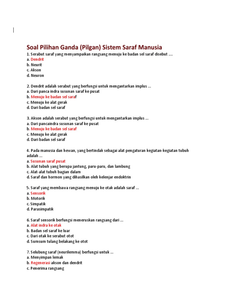Struktur sarafsistem saraf pada manusia terdiri dari sel saraf yang biasa disebut dengan neuron dan sel gilial. Sistem saraf pada manusia juga berfungsi untuk melakukan komunikasi dengan dunia luar. Dikutip situs resmi kementerian pendidikan dan kebudayaan (kemendikbud), komponen sistem saraf terdiri dari. Misalnya pada sistem saraf simpatik berfungsi mempercepat denyut jantung, sedangkan pada sistem saraf parasimpatik akan memperlambat denyut jantung. Sistem ini bekerja dengan mengambil informasi melalui bagian tubuh atau indera. Efektor yang penting pada manusia ialah otot dan kelenjar. Neuron berfungsi sebagai alat untuk menghantarkan impuls (rangsangan) dari panca indra menuju otak dan kemudian hasil tanggapan dari otak akan dikirim menuju otot. Sistem saraf merupakan sistem yang bekerja menerima rangsang, baik dari luar maupun dalam tubuh, memproses rangsang menjadi perintah tertentu yang kemudian dilanjutkan ke bagian tubuh yang menjadi pelaksana perintah tersebut. Sistem saraf pada manusia yang meliputi gambaran saraf, sistem saraf pusat, fungsi saraf dan fungsi akson implus, sel saraf atau neuron. Sistem saraf manusia merupakan jaringan saraf yang saling berhubungan, sangat khusus, dan kompleks. Documents similar to makalah sistem saraf pada manusia terbaru lengkap. Sekolah tinggi farmasi sari, mega. Kemudian meneruskan untuk menanggapi rangsangan yang dapat dilakukan oleh sistem saraf dan alat indera.